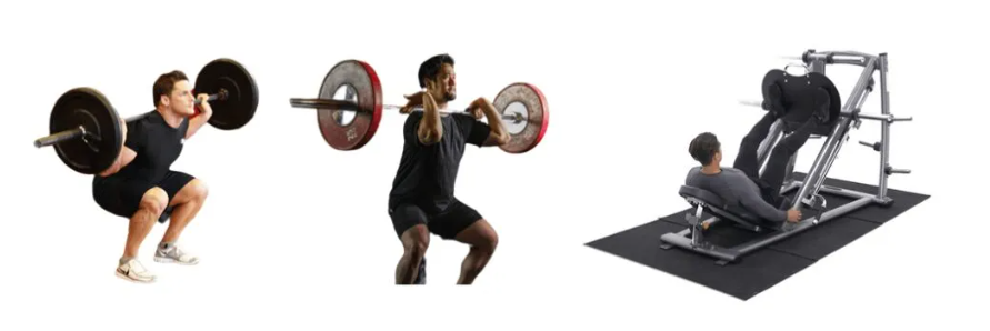 Así, cuanto más nos alejemos del patrón específico de un ejercicio, menor será la transferencia de fuerza de un ejercicio a otro. Por ejemplo, si hablamos de una sentadilla de competición (con la barra baja y una postura de piernas amplia), la transferencia de fuerza de una sentadilla con barra alta y piernas juntas será mayor que la de una sentadilla frontal, y mucho mayor que la de una prensa de pierna (esto es lo que se conoce como el "continuum de especificidad").