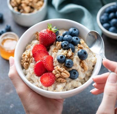 Si tienes un poco más de tiempo por la mañana, la avena es tu aliada. Te llena sin hacerte sentir pesado y te da energía constante durante todo el entreno. Agrégale fresas o arándanos para darle sabor y ese toque de dulzura natural. ¡Perfecto para los días que necesitas más combustible!